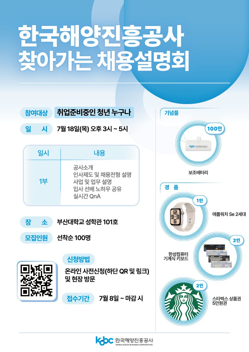 한국해양진흥공사 채용설명회 일정을 아래와 같이 알립니다.